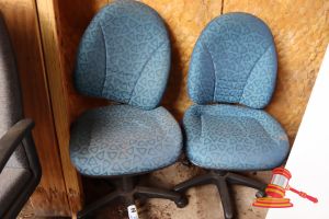2 x BLUE MOTTLE FABRIC COVERED OFFICE CHAIRS