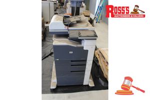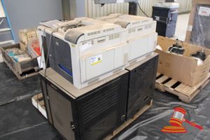 BUNDLE CONSISTING OF: 2 x METAL SERVER CABINETS, APPROX: 590mm x 610mm x 630mm; 1 x METAL SERVER CABINET, APPROX: 620mm x 610mm x 930mm; AND 2 x HP CP4025 COLOUR LASER PRINTERS, ELECTRIC, 240V PLUG, UNTESTED.