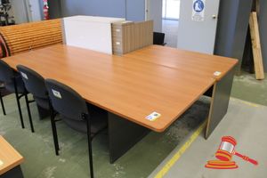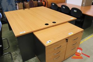 OFFICE FURNITURE BUNDLE CONSISTING OF: 2 x TIMBER LAMINATE OFFICE DESKS, APPROX: 1800mm x 800mm x 730mm; AND 2 x 3 DRAWER TIMBER LAMINATE PEDESTALS, APPROX: 470mm x 480mm x 690mm