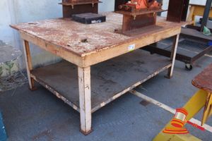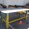 HEAVY DUTY WELDED STEEL WORKBENCH, WITH 28mm STEEL PLATE TOP; APPROX: 2030mm x 1320mm x 895mm.