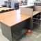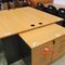 OFFICE FURNITURE BUNDLE CONSISTING OF: 2 x L-SHAPED TIMBER LAMINATE OFFICE DESKS, APPROX: 1800mm x 1800mm x 730mm; 1 x TIMBER LAMINATE OFFICE DESKS, APPROX: 1800mm x 800mm x 730mm; 1 x TIMBER LAMINATE BOOKCASE, APPROX: 900mm x 320mm x 900mm; 1 x 3 DRAWER TIMBER LAMINATE PEDESTAL, APPROX: 480mm x 480mm x 650mm; 1 x 3 DRAWER TIMBER LAMINATE PEDESTAL, APPROX: 460mm x 530mm x 670mm; AND 1 x LEATHER LOOK EXECUTIVE CHAIR