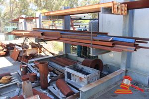BUNDLE CONSISTING OF: 4 x FREESTANDING 3 TIER CANTILEVER RACKS, APPROX: 1800mm D x 1200mm x 2200mm; WITH LARGE QUANTITY OF STEEL INCLUDNG: SQUARE HOLLOW, RECTANGULAR HOLLOW, FLAT BAR, "I" BEAM, CHANNEL, ANGLE, SOLID ROUND, SOLID SQUARE, CHECKERPLATE OFF-CUTS, FENCE WIRE AND 2 x TEMPORARY FENCE PANELS WITH 3 x FEET.