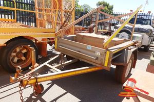 ** ALL TYRES FLAT & DAMAGED - HOLES/RIPPED, NO TRAILER PLUG, TOOL BOX LID LOOSE ON DRAW BAR ** (NO ASSET#, WP#4296)