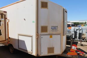 WHITE, SINGLE AXLE, UNLICENSED, VIN# 6T9T23A8J90RA8020, WATER HEATER - RINNAI - IN FAR COMPARTMENT, SHOWER SECTION MIDDLE CUBICLE, 7 PIN LRG ROUND TRAILER PLUG