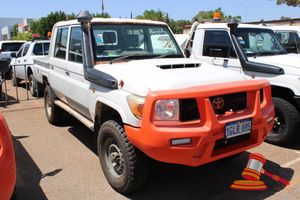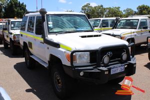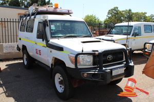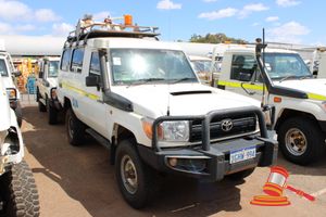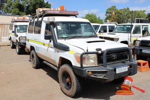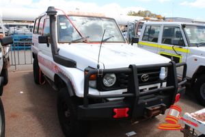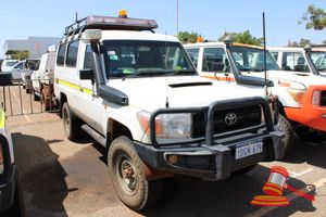 WHITE, 4 X 4, MANUAL, P/S, A/C, V8 DIESEL, REG# 1DRT658 LIC: 14.11.26, ODO# 219,623 KMS SHOWING ON CLOCK, VIN# JTERV71J900003158, ENG# 1VD0068872, SIDE STEPS, BULLBAR, SIDE LADDER TO ROOF RACK, BULLIVANTS LOGGING BOOM & WINCH, WLL 200KG, 2 X REAR MOUNTED SPARE TYRES, SEATED REAR CONTROL, BENCH, VICE, PHOENIX INVERTER, SEPURA UNIT, GME TWO WAY