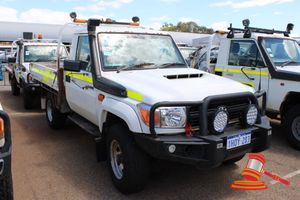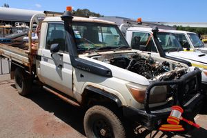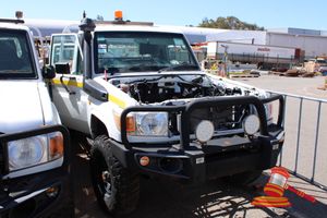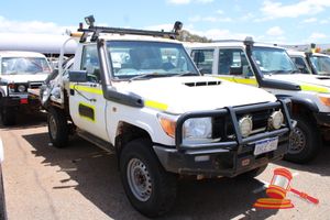 WHITE, 4 X 4, MANUAL, P/S, A/C, DIESEL, REG# 1DYQ362 LIC: 3.7.26, ODO# 145,248 KMS SHOWING ON CLOCK, VIN# JTERV71J400005593, ENG# 1VD0159205, SIDE STEPS, SNORKEL, BULLBAR, SEPURA UNIT, GME TWO WAY RADIO, SIDE LADDER TO ROOF RACK, REAR MOUNTED SPARE TYRE, BULLIVANTS LOGGING BOOM & WINCH - WLL 200KG, REAR SEATED CONTROL, PHOENIX INVERTER, WORKBENCH