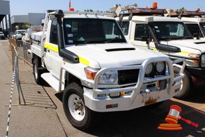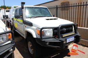 WHITE, 4 X 4, MANUAL, P/S, A/C, V8 DIESEL, REG# 1DGN679 LIC: 28.4.26, ODO# 188,820 KMS SHOWING ON CLOCK, VIN# JTERV71J000003274, ENG# 1VD0072078, SIDE STEPS, BULLBAR, SNORKEL, SIDE LADDER TO ROOF RACK, GME TWO WAY, 2 X REAR MOUNTED SPARE TYRES, REAR WORK AREA - WORK BENCHES
