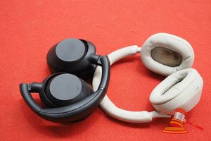 2 X SONY NOISE CANCELLING HEADPHONES. 1 X BLACK ULT, 1 X BEIGE (EAR PADDING MARKED). UNTESTED