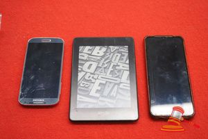 1 X AMAZON KINDLE EREADER, 1 X VIVO PHONE, MODEL: V2023, 128GB STORAGE, 1 X SAMSUNG GALAXY S4 PHONE, MODEL: GT-I9505, 8GB STORAGE (MISSING REAR COVER). UNTESTED