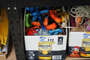 BOX OF ASSORTED TIE DOWN STRAPS AND ROPE