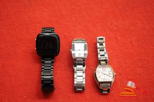 1 X MARKED SEIKO RADIO WAVE CONTROL SOLAR WATCH, WHITE METAL WITH DATE WINDOW, WR 10 BAR (1B22-0880=12), 1 X MARKKED CASIO WHITE METAL WATCH WITH SILVER FACE (1330 LTP-1165), WR, 1 X MARKED ALEXANDRE CHRISTIE DIGITAL WATCH, BLACK METAL, WR 3ATM (2IU/2176