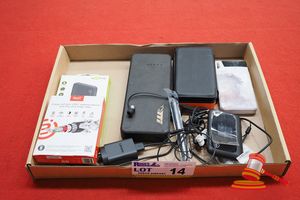 TRAY OF ASSORTED ITEMS INCLUDING POWER BANKS, TOUGH CABLE, STYLUS PEN, LENOVO CHARGER, JBL EARBUDS (L18)