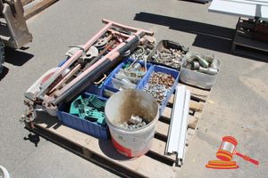 Pallet containing: 1 x Custom Hydraulic Sand Mixer; 1 x Auger, Approx 1500mm l x 160mm Diam; and 1 X Custom Lifting Attachment with Forklift Tyne Pockets.
