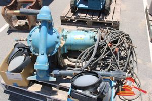 Pallet containing: 1 X Submersible Pump, Electric, 3 Phase 5 Pin Plug, Unknown Working Condition; 1 x Sandpiper Water Pump, Unknown Working Condition; External Light Fittings, 240V, Unknown Working Condition.