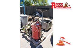 Pallet containing: 1 x Oil Collector and Pan; 1 x Water Pump with Petrol Engine, Make: Pramac, Model: MP56-3, Unknown Working Condition; and 1 x Gerni High Pressure Washer with Hose and Gun, Electric, 240V, Working Condition Unknown.