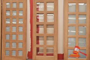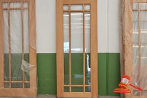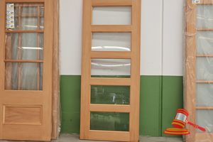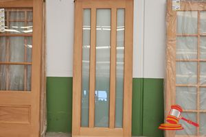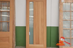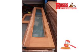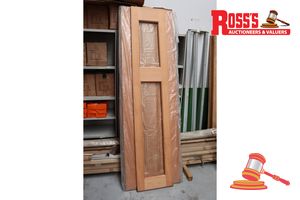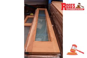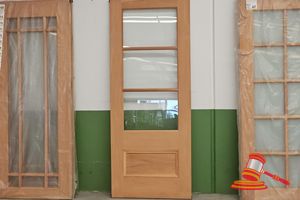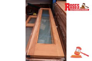 - TIMBER DOOR WITH 2 x LIGHT PANELS, APPROX 2040 x 405 x 35mm