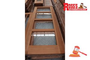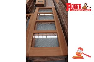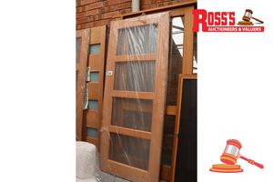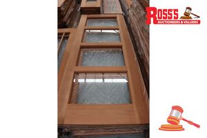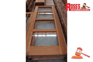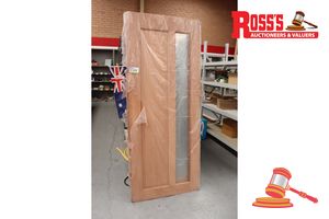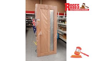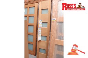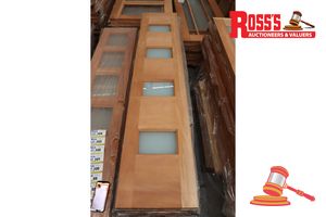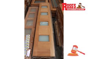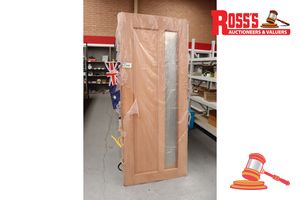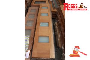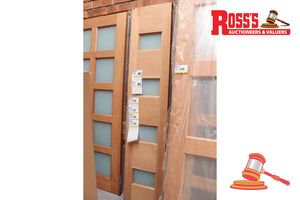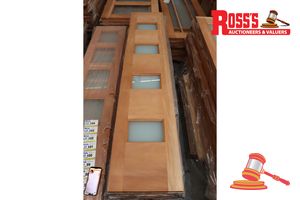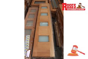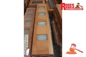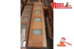 - TIMBER DOOR WITH 4 x FROSTED LIGHT PANELS, APPROX 2040 x 405 x 38mm