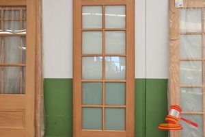 - TIMBER DOOR WITH 10 x FROSTED PANELS, APPROX 2040 x 870 x 38mm