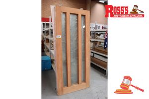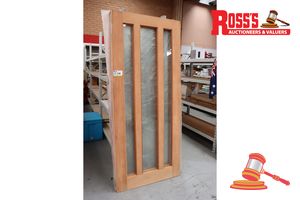 - TIMBER DOOR WITH 3 x FROSTED LIGHT PANELS, APPROX 2040 x 870 x 38mm