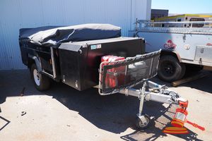 Features: Anderson Plug, 7 Pin Rectangle Trailer Plug, 2 x Fuel Jerry Cans (metal) 2 x Small 4kg Gas Mate Cylinders - still in date, Front Storage with 2 x sliding drawers, Rear Compartment with 1 x sliding drawer, 1 x sliding 4 burner cooking drawer, Soft Floor, 4 x additional Storage Units, Water Hose, 1 x Solar Panel 160w, Full Rear Annexe in good condition, side fold out & sleeping area, double ensuite enclosure, Water Tank