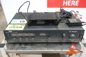 1 X BOSCH PLENA 30W MIXER AMPLIFIER, MODEL: PLE-1MA-030-EU, 1 X SHURE WIRELESS RECEIVER, MODEL: GLXD4 Z2, BOTH ITEMS UNTESTED.