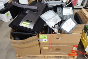 PALLET OF IT SUNDRIES, INLCUDING MONITORS, DOCKS, CABLES IP PHONES.