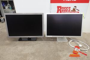1 X APPLE CINEMA HD DISPLAY - MODEL: A1083 - 1 X DELL 30 INCH LCD - MODEL: 3008WFPT - 2 X 24 INCH LCD MONITORS ATTACHED TO MONITOR STAND - ALL ITEMS UNTESTED (SOME MARKS / NO POWER CORDS)
