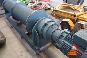 DOUBLE SPOOL 25HP ELECTRIC WINCH, LEFT AND RIGHT LAY DRUMS , 44 TURNS/DRUM, DRUM = 450mm OD, 3/4 ROPE, 62M APPROX ON FAST WRAP