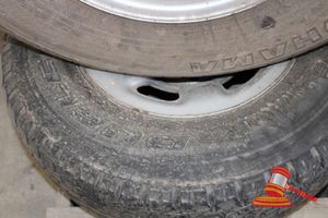2 x STEEL RIMS AND TYRES (POSSIBLE NISSAN ) 1 BEING 275/70-16 1 BEING 265/70-16, 5 STUD