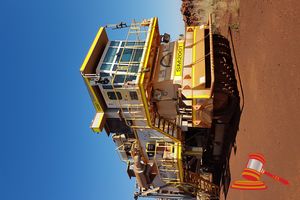 TAKRAF SURFACE MINER TSM 300, HRS 183 (REAL HOURS) ASSET# SM2001. MATERIAL: IRON ORE, UNCONFIRMED COMPRESSIVE STRENGTH: UP TO 60 MPa, RATED CAPACITY: 172bm3/h, PEAK CAPACITY: 450 bm3/h, CUTTING CIRCULAR DIAMETER: 1.6m, DRUM WIDTH: 3.75m, CUTTING RATE: max 5 m/s, NOMINAL DRIVE POWER AT THE DRUM: 2 X 240 kW, MAX CUTTING HEIGHT: 0.8m, MAX CUTTING WIDTH: 3.8m, DRIVING SPEED AT RATED CAPACITY & MAX CUTTING HEIGHT: 1.67m/min, NUMBER OF CRAWLERS: 3, AVERAGE GROUND PRESSURE: APPROX 127 kPa, DRIVING SPEED: 0-20 m/min, OUTREACH LOADING BOOM: 12.9m, MAX HEIGHT DISCHARGE PULLEY: APPROX 6.9m, TOTAL INSTALLED POWER: 839kW, SERVICE WEIGHT: APPROX 125.5T